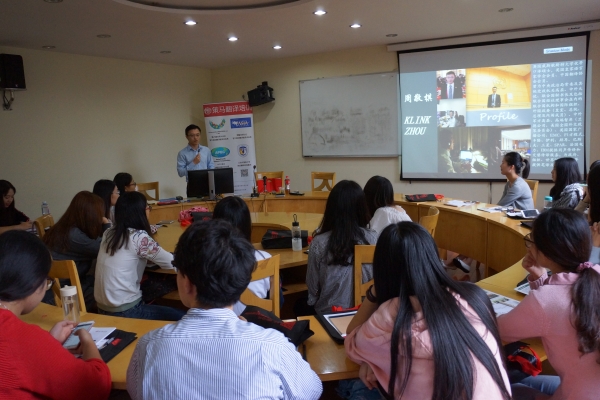 10月20日下午,上海策马翻译有限公司独家译训师周敬棋应邀在徐汇校区六教206为437ccm·必赢国际16级研究生作了题为“策马扬鞭,译往无限”的精彩讲座。