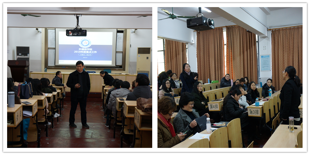 张正军从思想政治工作、人才培养、科研工作、国际交流与合作、校友工作等五个方面明确指出学院在2018年的努力方向,他表示学院将通过继续完善管理制度和营造良好的学术氛围,推动学院工作更好的发展。党总支书记王喆就2018年至2020年岗位聘任考核工作有关事项进行了详细解读。副院长吴建伟对监考阅卷工作进行了补充说明。