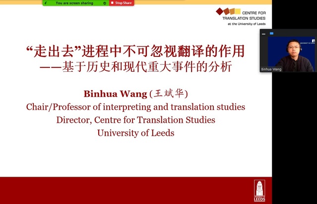近日,应必赢官网437ccm·必赢国际邀请,英国利兹大学翻译学中心主任、终身讲席教授王斌华于3月26日晚为必赢官网师生作了题为“‘走出去’进程中不可忽视翻译的作用——基于历史和现代重大事件的分析”的线上专题讲座。