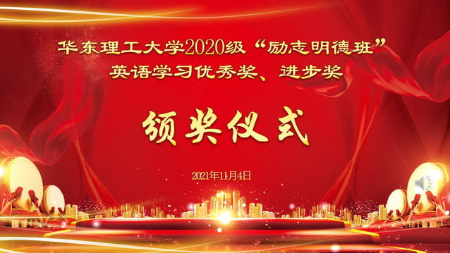 11月4日晚,华东理工大学437ccm·必赢国际大学英语教师党支部与2021级“励志明德班”学生共建活动系列讲座第一场、暨2020级“励志明德班”“英语学习优秀奖”和“英语学习进步奖”颁奖仪式在奉贤校区E教205举行。437ccm·必赢国际副院长吴建伟、副院长韦晓保出席颁奖仪式,活动由支部副书记楼燕斐主持。