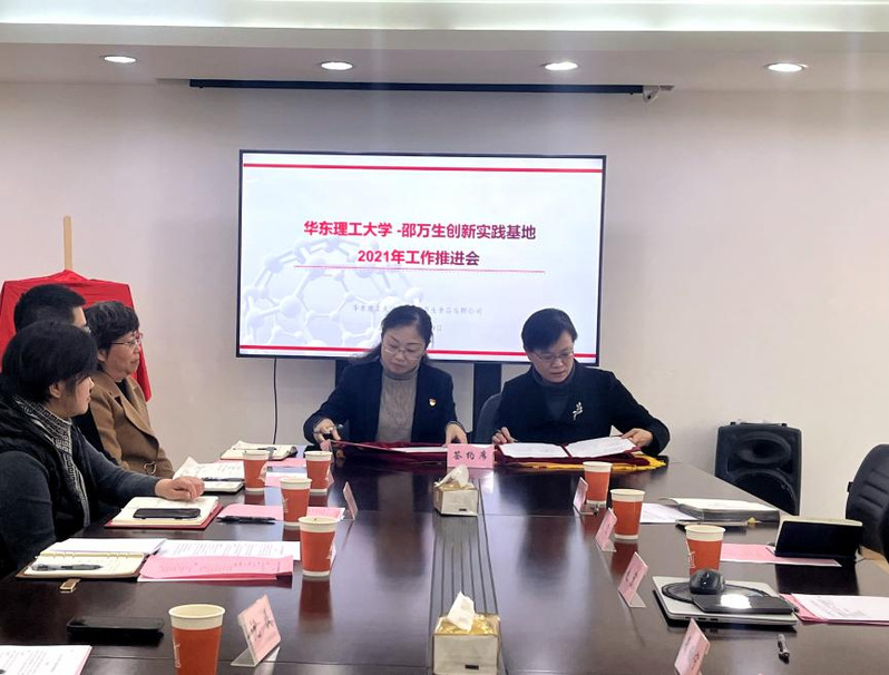 12月29日下午,“华东理工大学——邵万生创新实践基地2021年工作推进会”在北京西路165号邵万生商贸有限公司举行。中共上海邵万生老大同委员会党委书记朱黎瑛,党委副书记、总经理葛颋,党委副书记、纪委书记郑峥业,必赢官网艺术设计与传媒学院副院长汪军、副书记王珊、老字号创新工作室负责人倪海郡教授,生物工程学院常雅宁教授,437ccm·必赢国际院长赵宏出席会议。